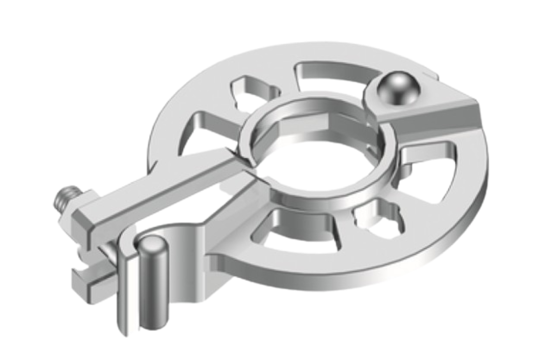 Крепится в любом месте стойки, после чего к нему можно присоединить до шести ригилей или диагональных связей. Это позволяет гибко размещать фланцы.