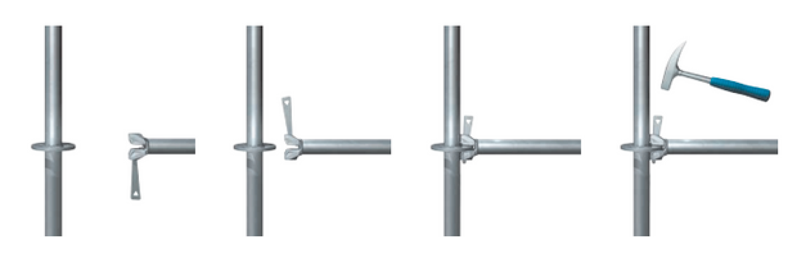 С каждой стороны ригеля и диагоналей имеется клиновая головка, при помощи которой эти элементы надежно закрепляется со стойками через фланец. Диагонали с клиновыми головками значительно усиливают каркас строительных лесов, состоящий из стоек и ригелей и, благодаря своим высоким прочностным характеристикам, позволяют создавать уникальные конструкции.